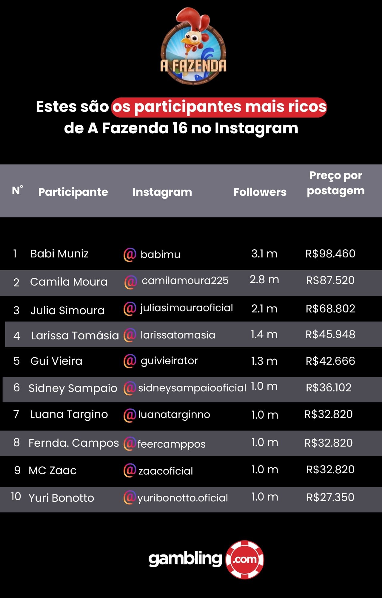 Análise dos Perfis de Instagram dos Participantes de A Fazenda 16: Quanto Eles Podem Ganhar por Postagem?